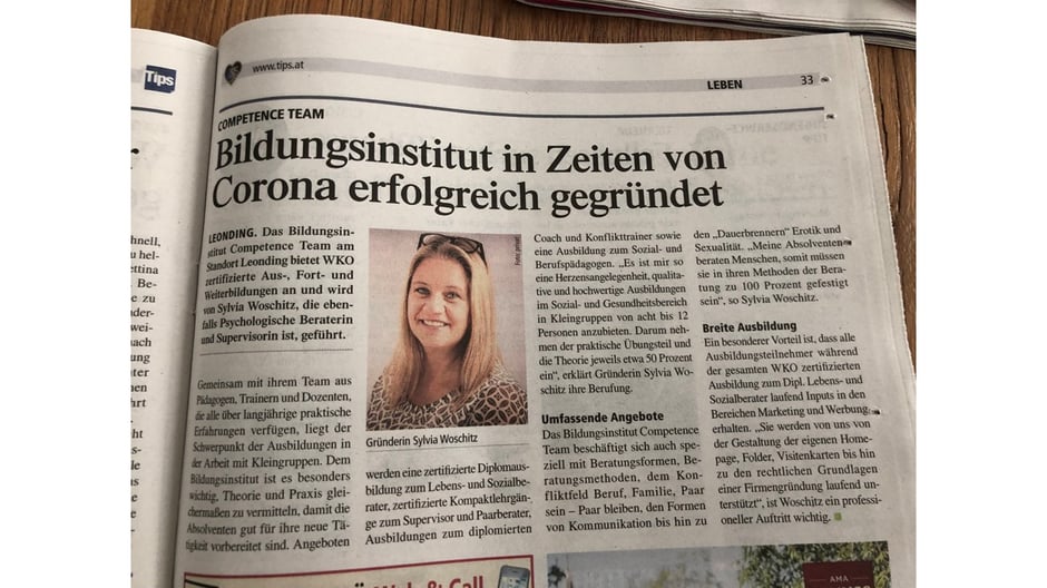 Sylvia Woschitz ist Trainerin, Coach, Psychologische Lebens- und Sozialberaterin und hat einen Studienabschluss in Betriebswirtschaft und Marketing. Nach der Geburt ihrer Tochter, die mittlerweile 9 Jahre alt ist, konnte sie sich nicht mehr vorstellen 60h die Woche zu arbeiten. Sie war im Management großer Unternehmen tätig.