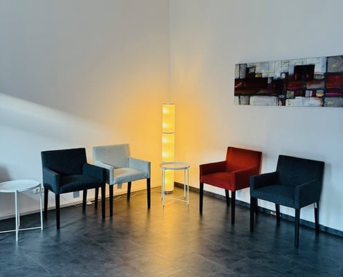 - 3 Beratungsstühle / kleiner Tisch / Stehlampe / hell und freundlich